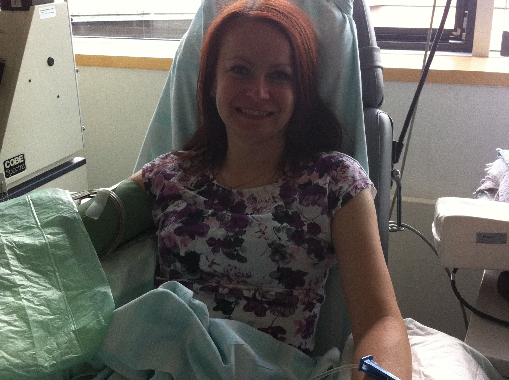 Telefon - myślę sobie jakiś telemarketing... przeczytałam maila - to DKMS. Czym prędzej oddzwoniłam, padło pytanie "Czy nadal podtrzymuję swoją chęć pomocy”. Odpowiedź była tylko jedna: TAK. I tak pobranie krwi do typizacji, oczekiwanie na zgodność (które mnie zjadało wewnętrznie), tym większa była radość, gdy się okazało, że ona jest. Po kilkunastu dniach byłam już w Dreźnie, gdzie poddano mnie badaniom oraz pobrano krew do szczegółowej analizy. Myśl, że już niebawem będę mogła pomóc, działała jak narkotyk - z każdym dniem czułam się coraz bardziej uzależniona radością, szczęściem i ciepłem.