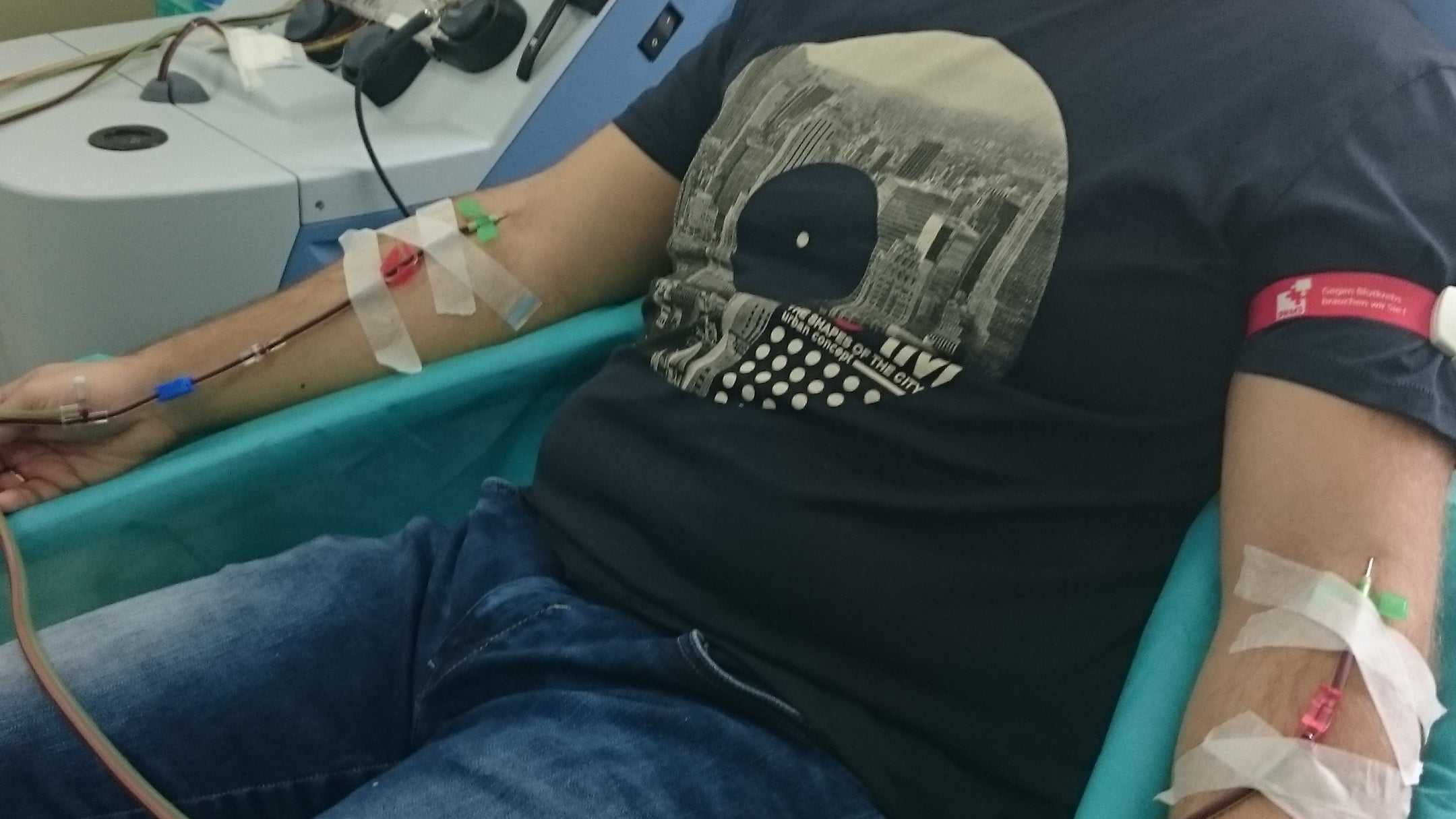 Dzień pobrania również zapamiętam do końca życia, podobnie jak pierwszy telefon z DKMS. Komórki pobrane były metodą separacji z krwi, jak w 80% przypadków, a nie z talerza kości biodrowej. To oznaczało, że czeka mnie kilkugodzinne leżenie/siedzenie na wygodnym fotelu. Minus takiego pobrania, to brak możliwości ruchu rękoma. Nie macie pojęcia, jak działa ludzka podświadomość wiedząc, że nie można ruszyć ręką. W pewnym momencie myślałem, że nos i czoło będą mnie swędzieć cały czas. Na szczęście na posterunku czuwała moja żona. Jej obecność była nieoceniona. To ona drapała mnie po nosie i czole, gdy tylko poprosiłem. To ona poprawiała poduchę pod plecami, gdy ta zsuwała się bezlitośnie w dół. Przez cały ten czas separacji komórek zastanawiałem się, czy uda się nagromadzić wystarczającą ilość materiału, by całą procedurę zakończyć w jeden dzień. Podświadomie myślałem, że muszę się wykazać i pokazać biorcy, że skoro ja – bliźniak genetyczny – mam tyle sił, by wytworzyć odpowiednią ilość komórek krwiotwórczych dla Niego, to On, Biorca, musi potem wykazać się odpowiednią bliźniaczą siłą, by zwalczyć chorobę i wrócić do normalnego życia.