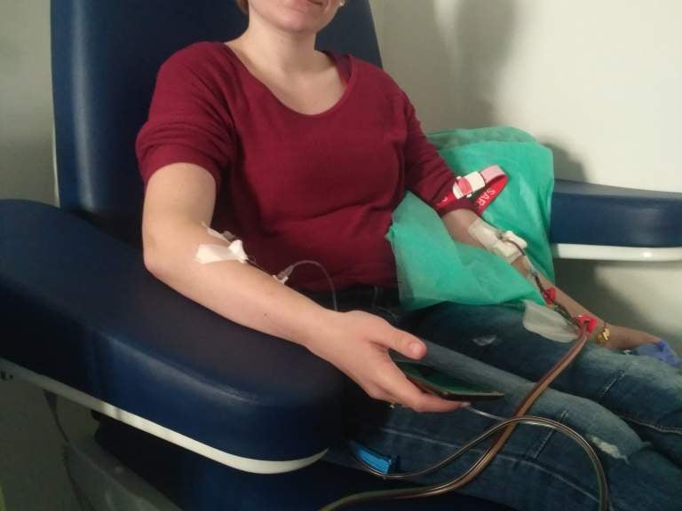 Wszystko zaczęło się od maila: "została Pani wytypowana jako zgodna z konkretnym pacjentem...". Zaraz po tym był telefon z Fundacji z zapytaniem czy nadal chcę zostać dawcą oraz ze szczegółowymi informacjami jak by to miało wyglądać. Po potwierdzeniu mojej gotowości , fundacja umówiła mnie na pobranie krwi we wskazanej przeze mnie placówce. Po równych trzech tygodniach dostałam wiadomość, że wszystko jest ok i możemy się umówić do kliniki pobrania na bardziej szczegółowe badania wstępne oraz na sam zabieg. Wtedy też dowiedziałam się, że będzie to robione metodą poboru komórek macierzystych z krwi obwodowej. W skrócie opisując: z jednej ręki krew wypływa by specjalistyczny sprzęt mógł wybrać sobie komórki macierzyste, a następnie taka "odwirowana" krew wraca drugą ręką. Nic strasznego i nic bolesnego. Żadnego grzebania w kręgosłupie! Na badaniach wstępnych zostałam także poinstruowana jak przyjmować tzw. czynnik wzrostu, odpowiedzialny za namnażanie komórek macierzystych w moim organizmie.